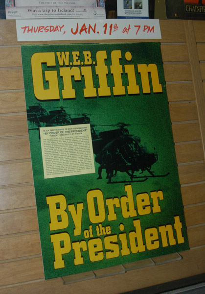 The promotion tour for the publication of the hardback edition of By Order Of The President—Book I in the Presidential Agent series—took place in early January 2005. The series is based in large part in Washington, D.C., and the tour went from the greater D.C. area to Philadelphia, then on to Georgia. > view photos