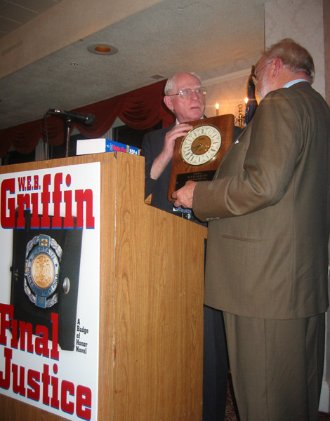 01/09/2003: The Honorable Joseph F. O’Neill, who served as Philadelphia’s Police Commissioner from 1971 to 1980, presenting W.E.B. Griffin life membership in the Police Chiefs Association of Southeast Pennsylvania, Delaware, and South New Jersey.