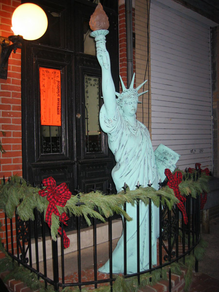 01/10/2003: Lady Liberty still holding forth at Liberties Restaurant and Bar. Why a second posting? Why the hell not? We like her and the bar. Anyone having a problem with that can leave their phone number at the bar; Matt Payne will be in touch.